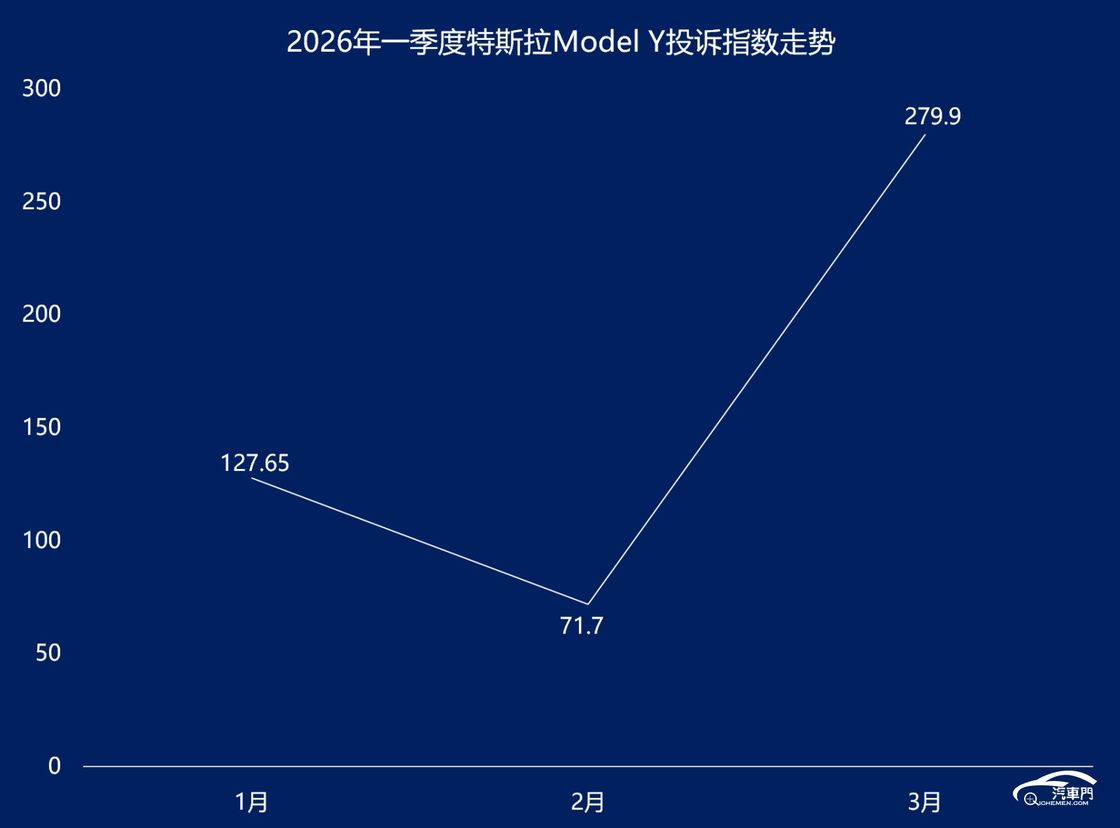 汽车门网数据显示:2026年一季度,特斯拉Model Y投诉指数达到了479.25,同比涨超7倍。这背后,减震器异响成了该车投诉指数飙升的罪魁祸首。