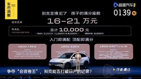 作为别克至境品牌下的第二款车,至境E7的定价逻辑跟第一款车L7明显不同。去年9月,别克至境品牌首款车型至境L7正式上市,限时权益价为16.99-21.59万元。不到17万元,就能买到一台轴距3米的合资豪华新能源中大型轿车,按理说,至境L7已经有了成为爆款的理由,但从之后市场销量看,至境L7并没有溅起太大的水花。