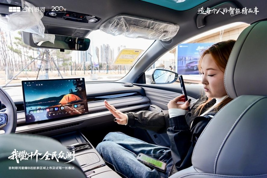 活动中,媒体嘉宾与车主通过沉浸式的试乘试驾,全方位体验吉利银河星耀8远航家系列在“科技、续航、安全、豪华、美学”五大维度的全面进阶,共同见证中高级电混轿车价值标杆的再进化。