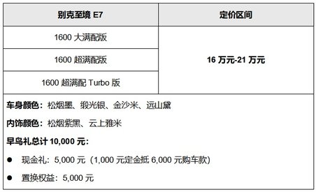 别克至境E7公布三款车型配置,定价区间16万-21万元,即日起至4月21日(含)前下定可享10,000元早鸟礼