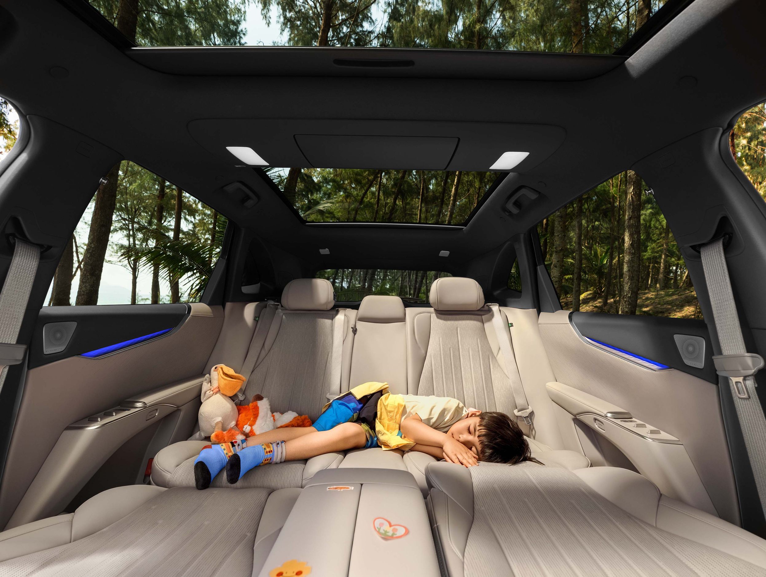 别克至境E7还是孩子的“百变更衣室”。凭借出色的纵向空间利用率,别克至境E7打造出同级领先的儿童二排可站立空间。身高1.2米的6岁孩童可轻松站立换装,孩子上下车无需低头弯腰,自在舒展天性。后备箱容积达 650L~1798L,更规划 30 处人性化储物设计,大件行李从容收纳,小件物品触手可及,完美适配家庭出行、露营、日常采购等多元空间需求。