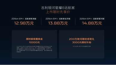 本次焕新,在原有130km EM-i尊享版基础上新增225km EM-i远航家航海版、225km EM-i远航家远洋版、225km EM-i远航家星河版三个版型。将20万级的旗舰配置下放至12万级价格带,上市限时先享价12.58万-14.88万元,真正做到了豪华平权,起步即旗舰。