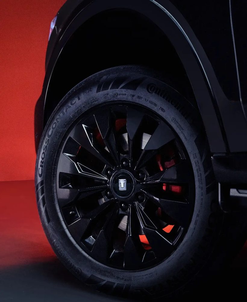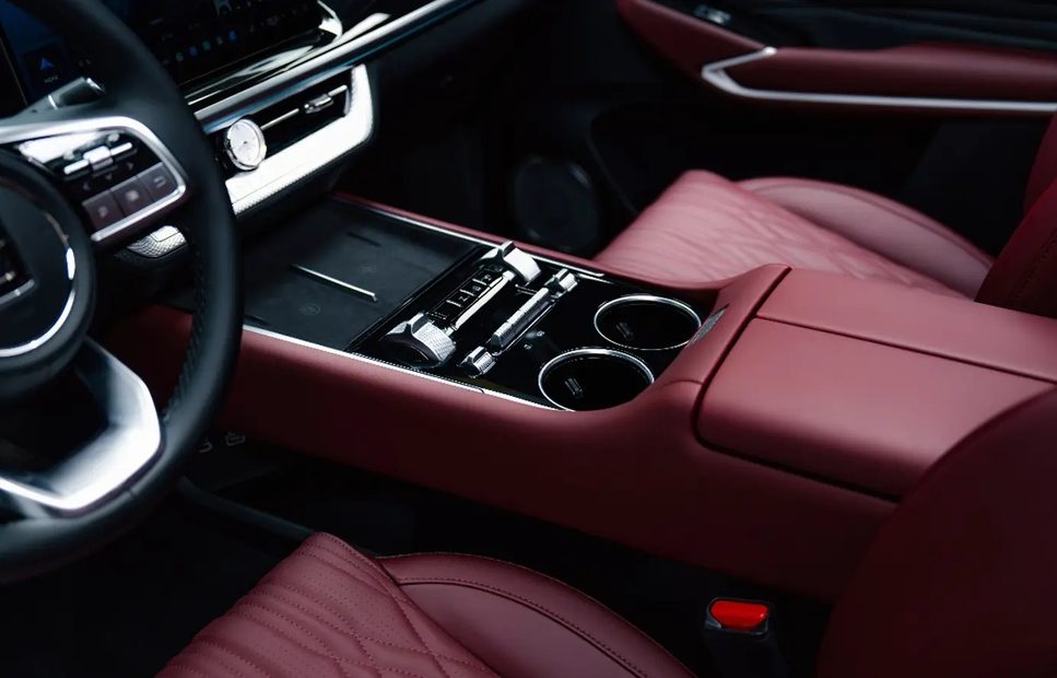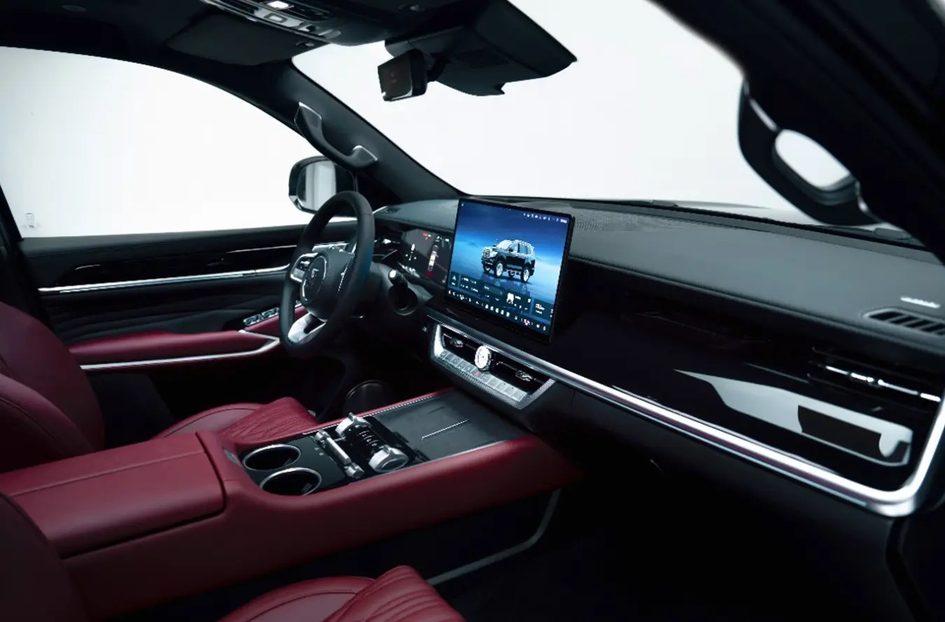 具体看这台车的设计,官方给它命名为“黑甲赤韵”。直白点说,就是外观黑得彻底,内饰红得亮眼。这种外黑内红的搭配,虽然说有点老生常谈吧,但在这种中大型硬派SUV上,那种压迫感和精致感平衡得刚刚好。