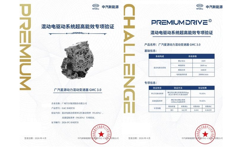 GMC 3.0混动变速器疾风版为国内首个重量低于100kg的轻量化DHT,整机仅重98.5kg,WLTC工况驱动效率达93%,最高传动效率98.7%,电控效率更以99.2%提前达成《节能与新能源汽车技术路线图》设定的2035年目标。配合广汽自研AI能量控制平台,系统可实时判断路况与驾驶习惯,自动切换最优能源模式,让搭载该系统的B级MPV油耗迈入3升时代,A级轿车油耗迈入2升时代。