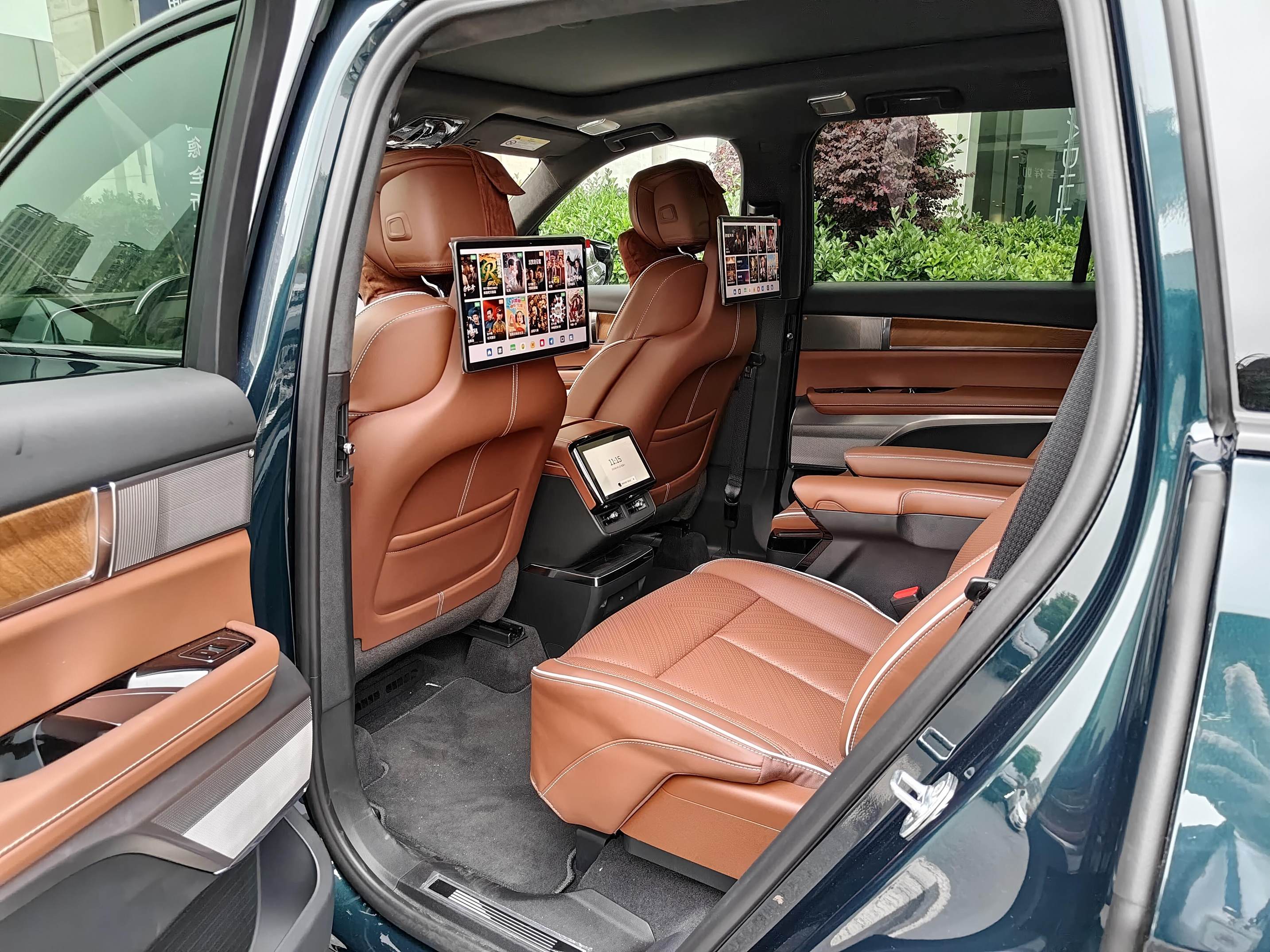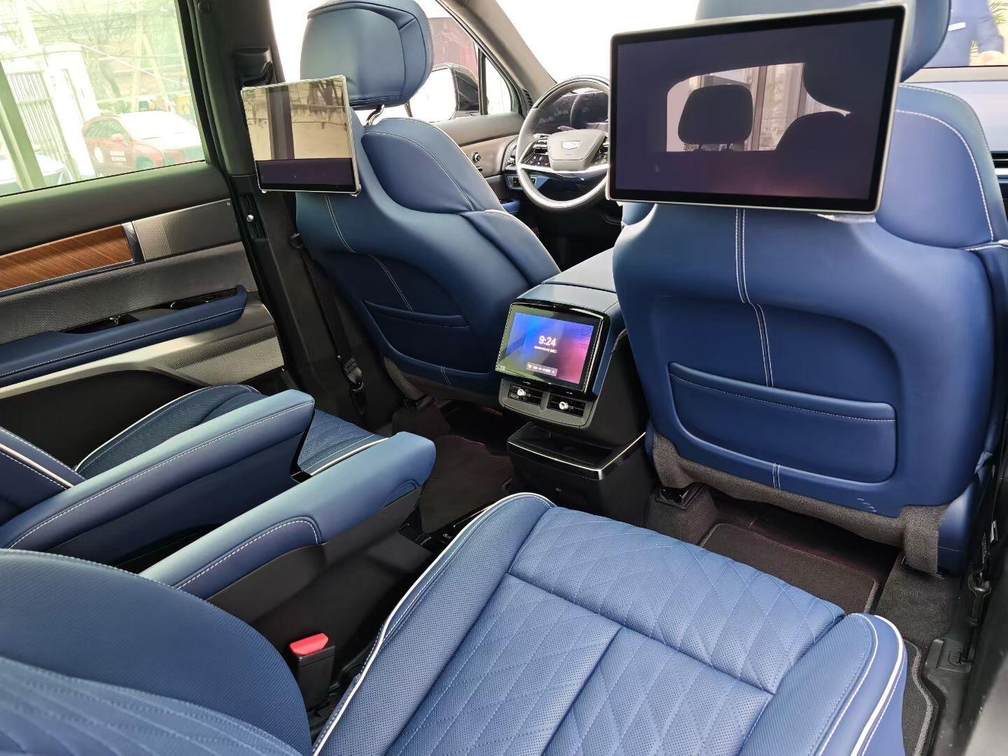 车内采用2+2+2式的六座布局,二排双独立座椅延续美式大沙发的豪华质感,并支持6向航空头枕、10点分区指感按摩以及加热/通风等功能,再配合12.9英寸后排双屏、后排功能控制屏、23扬AKG音响+Dolby 7.1.4杜比全景声、全景天窗+电动遮阳帘等,乘坐舒适性不言而喻。另外,后备厢盖板下还提供隐藏式下沉空间,第三排座椅纯平放倒后,也能进一步提升实用空间。