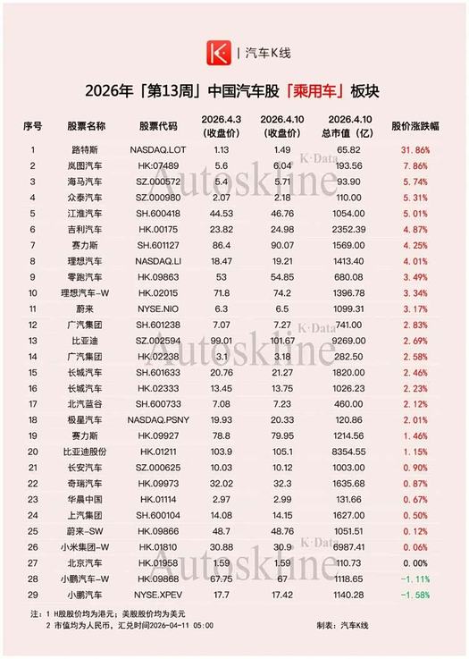 值得一提的是,在刚刚过去的这一交易周,路特斯成为汽车股乘用车板块中,最亮眼的存在。