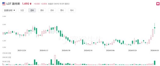 乐观预期与现实之间仍有差距。截至2026年4月10日,路特斯科技(LOT.US)股价约1.49美元/股,市值约9.64亿美元。