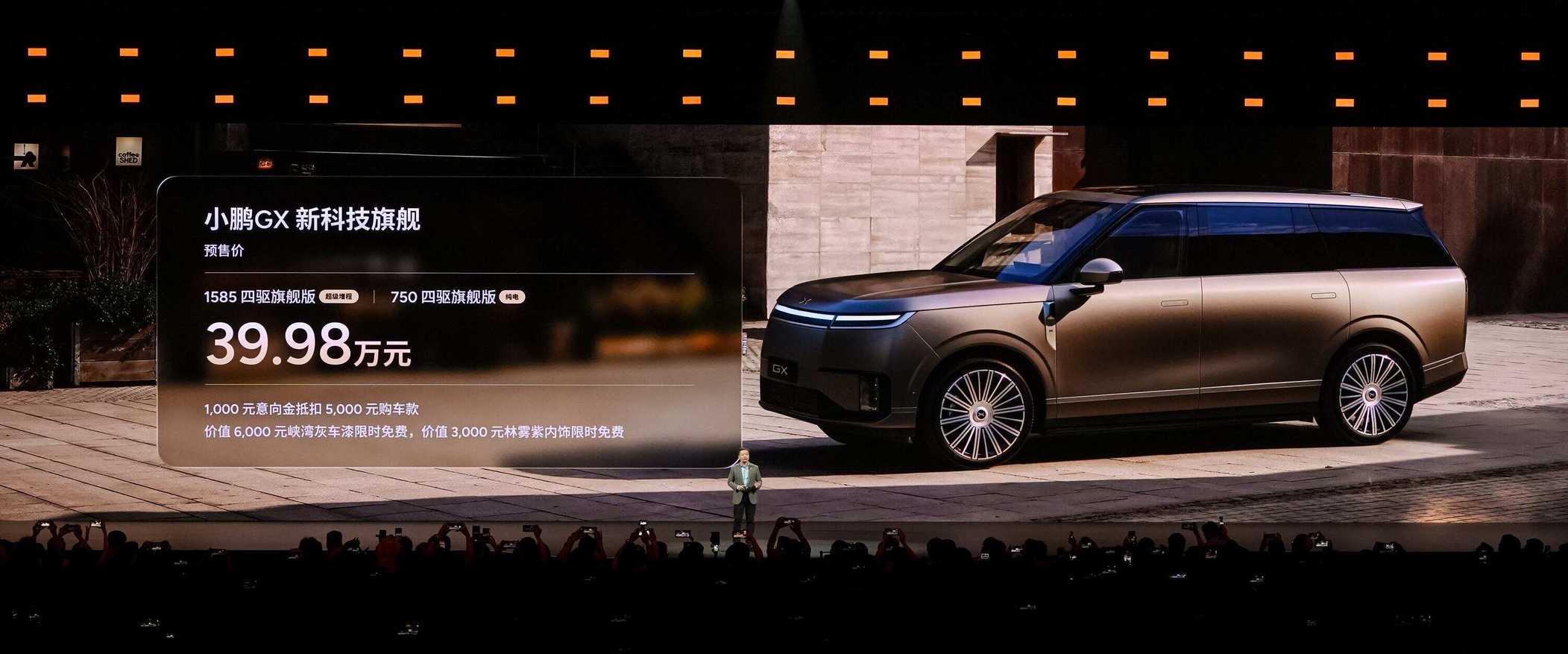 2026 年 4 月 15 日,小鹏汽车首款全尺寸旗舰SUVs—— 小鹏GX重磅亮相并正式开启预售,新车带来纯电和超级增程两个版本,预售价39.98万元。小鹏GX纯电版四驱纯电续航高达750km;超级增程版纯电续航430km,综合续航1585km。即日起至小鹏GX上市日,用户可享预订限时权益:1000元意向金抵扣5000元购车款,价值6000元的峡湾灰车漆、价值3000元的林雾紫内饰限时免费。