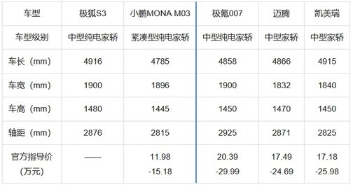 要知道,这个尺寸不仅比市面上多数热销的10万级纯电家轿大一圈,甚至超越了凯美瑞、迈腾等经典燃油B级车。这意味着,以前要花二十万才能拥有的中型车空间,现在极狐S3用10万级就给你了。即便把它和不少热门中大型轿车放在一起,尺寸也基本相当。