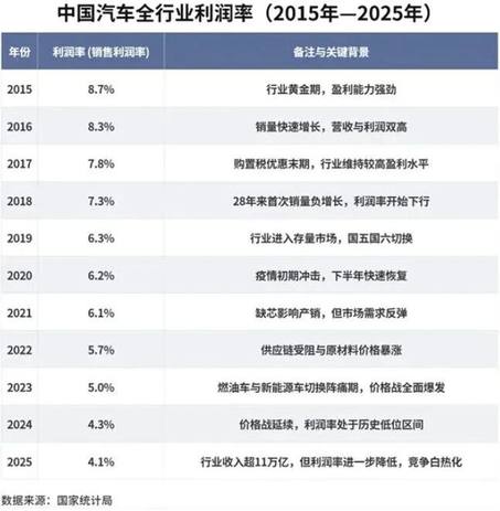 然而,繁荣的数字背后,是车企们叫苦不迭的利润危机。据国家统计局数据,行业利润率被压缩至仅4.1%,创下十年来的最低点。