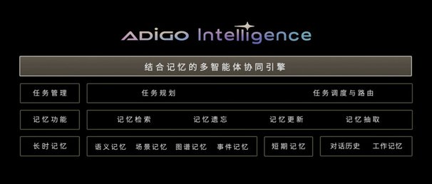 基于此,广汽发布ADiGO Intelligence端云一体架构,依托375万辆车的海量运行数据,打造端侧多模态感知、结合记忆的多智能体协同、多模态情感表达三大核心引擎,让汽车从“执行指令的工具”进化为“懂你的贴心伙伴”。