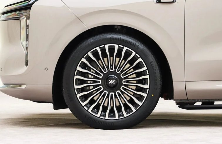 底盘方面,智己LS8搭载搭载搭载灵蜥数字底盘3.0,采用前双叉臂式后五连杆式独立悬架,配闭式空气悬架和后轮转向系统,支持双向24°超⼤⻆度,转弯半径仅4.85米,比很多微型车转弯半径都要小。