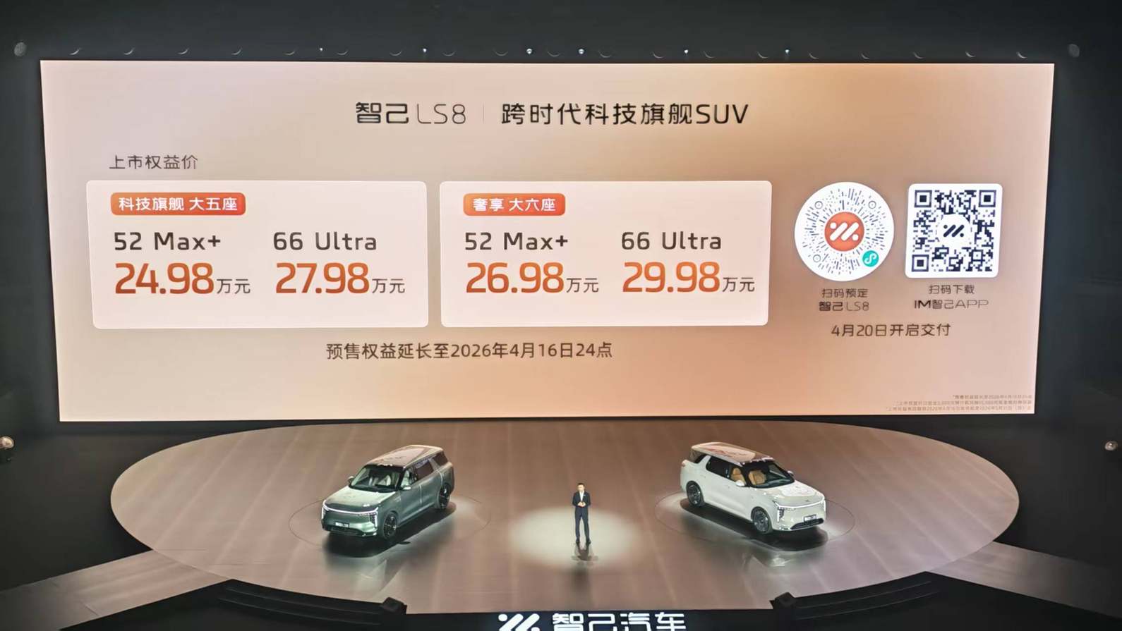 4月16日晚,智己LS8以24.98万-29.98万元权益价震撼上市。