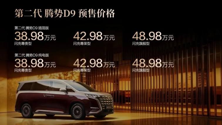 《早懂车》获悉,本次下线的第二代腾势D9,正是比亚迪核心技术的集大成之作,新车预售价为38.98万-48.98万。作为全球首款搭载第二代刀片电池的量产MPV,该车搭载比亚迪第二代刀片电池,续航实力全面突破:插混车型纯电续航达 401km,纯电车型续航高达 800km;并带来“5分钟充好,9分钟充饱,零下30℃充电仅多3分钟”的颠覆性充电体验。第二代腾势D9的长续航+闪充黄金组合,实现充电自由 + 时间自由 + 出行自由,让用户真正零焦虑。在智能化领域,新车全系标配天神之眼5.0智能驾驶系统,采用行业领先的全闭环端到端架构,具备自主强化学习能力,可依托海量真实驾驶数据持续迭代进化,实现更平稳的驾驶、更精准的泊车、更迅捷的反应,为用户全程保驾护航。在设计方面,新车内饰采用全新的设计语言,中排升级零压云绒座椅,以百万级的豪华标准,将豪华体验提升至全新维度。