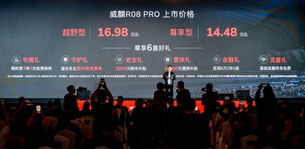4月17日,奇瑞威麟皮卡在山东日照举办新品发布会,重磅推出旗下首款硬派越野皮卡车型——威麟R08 PRO,同步发布尊享型、越野型两个版本,指导价分别为14.48万元和16.98万元。该车精准定位15万级首选硬派越野皮卡,凭借硬核产品实力与亲民定价,填补了该价位段高端越野皮卡的市场空白,也标志着奇瑞威麟皮卡完成从传统商用向全场景高端皮卡生态的战略跨越。