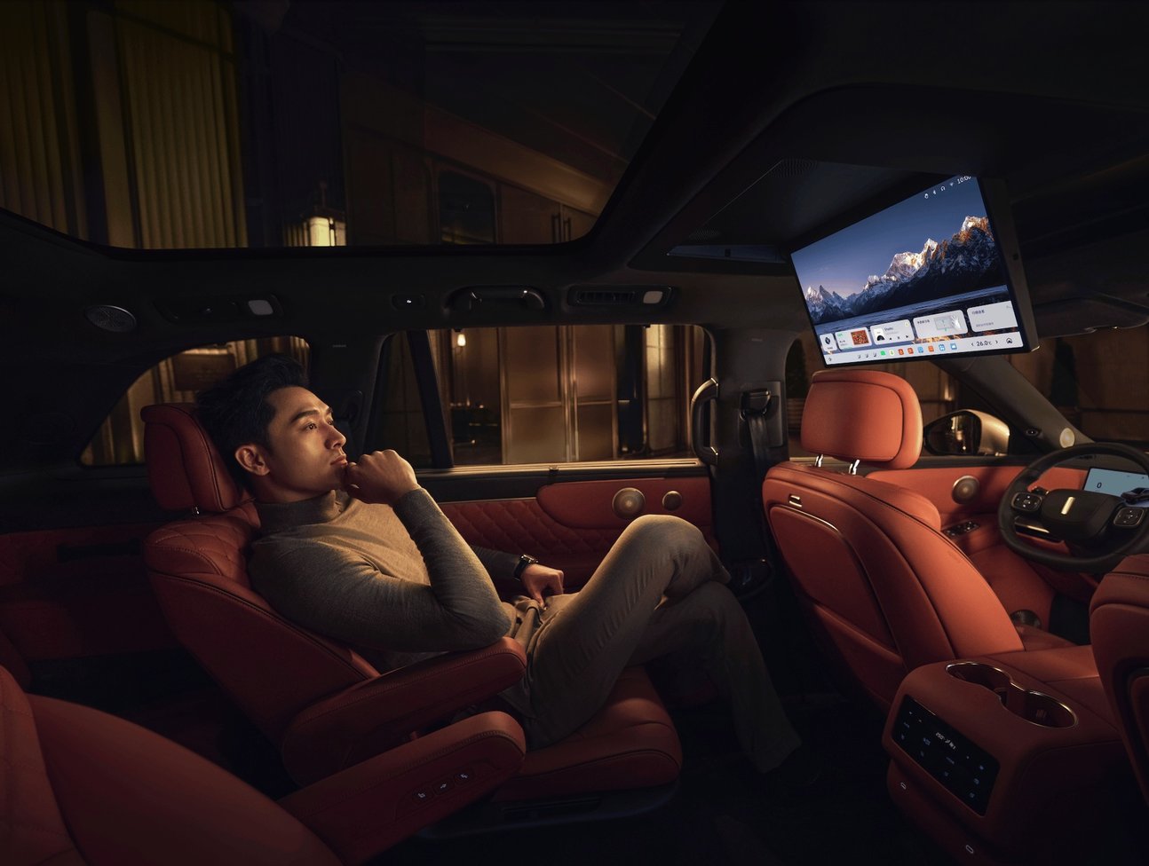 舒适的空间布局之外,魏牌V9X在智能娱乐与健康体验上同样不遗余力。魏牌V9X搭载21.4英寸4K QDMiniLED吸顶屏,搭配31个稀土强磁扬声器、3080W峰值功率的 Coffee AI Sound 音响系统,比很多百万级豪车都要高出一大截,并支持户外专属声场模式,打造移动沉浸式影音空间。座舱面料添加红外反射涂层,夏天暴晒之后,表面温度比普通皮质低15-20度,再也不会有上车烫腿的尴尬。同时,全车手能摸到的地方,基本都做了抗菌处理,抗菌率高达99.9%,以母婴级健康标准守护全家出行。