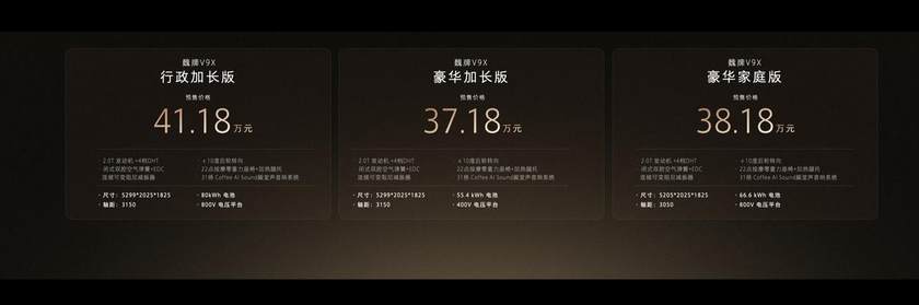 尺寸自由选,豪华无差别。魏牌V9X的价格,同样诚意十足。豪华家庭版,预售价38.18万元;豪华加长版,预售价37.18万元;行政加长版,预售价41.18万元。