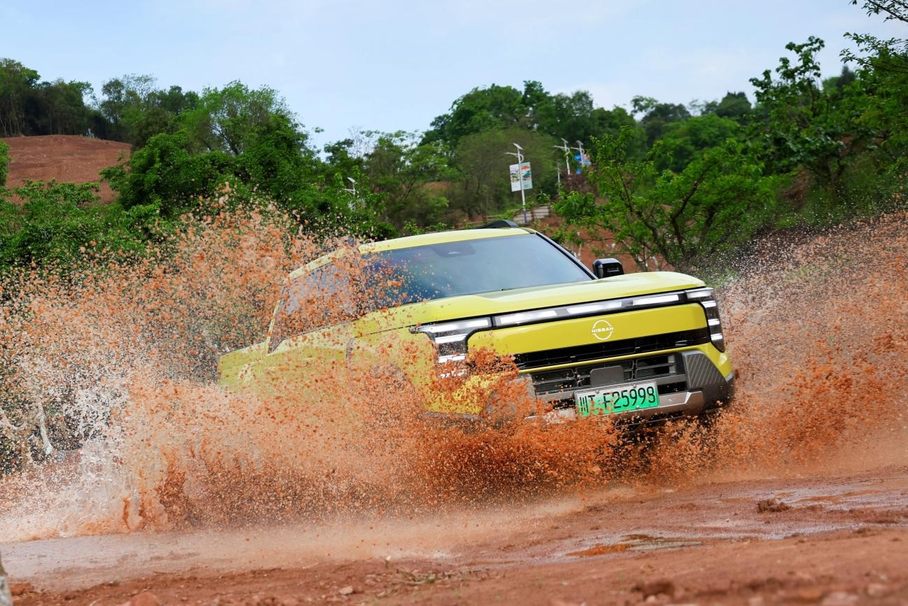 活动现场,锋坦Frontier Pro以其独特的外观设计吸引了众人的目光。V-Motion家族式前脸搭配悬浮激光镭雕logo,科技感与力量感并存。分体式LED大灯犹如锐利的眼眸,彰显着车辆的自信与霸气。车身侧面,硬朗的线条勾勒出肌肉感十足的轮廓,2K高色域防护车漆在阳光下熠熠生辉,质感出众。车尾部分,赛博朋克风格的贯穿式立体尾灯点亮后辨识度极高,尽显潮玩本色。