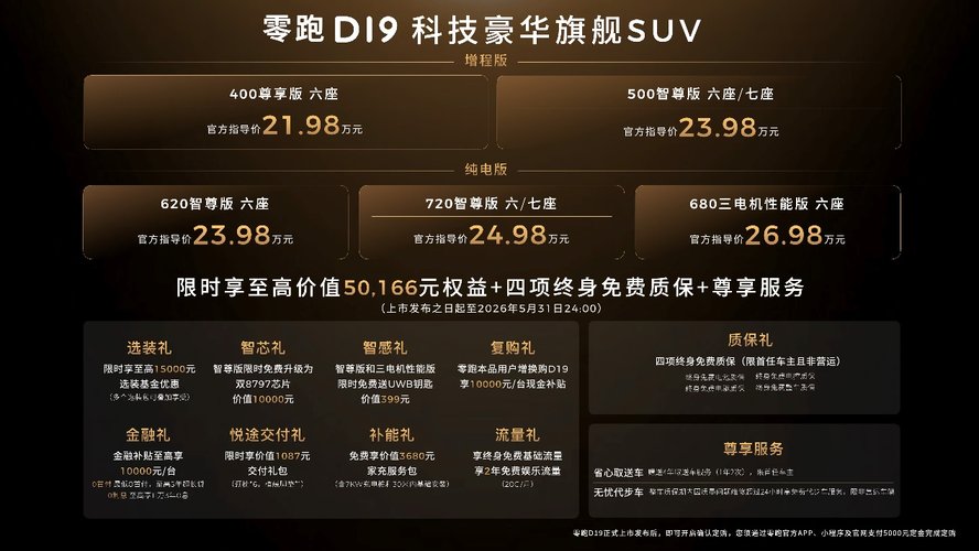 零跑D19的上市是零跑十年技术积淀的集中展现,是“科技普惠”理念的最高表达,标志着零跑完成了从主流市场到豪华旗舰市场的全面覆盖。未来,随着D19的陆续交付,我们有理由相信,它将成为2026年最炙手可热的全尺寸旗舰SUV,引领更多家庭开启“真旗舰、真豪华”的幸福出行新篇章。