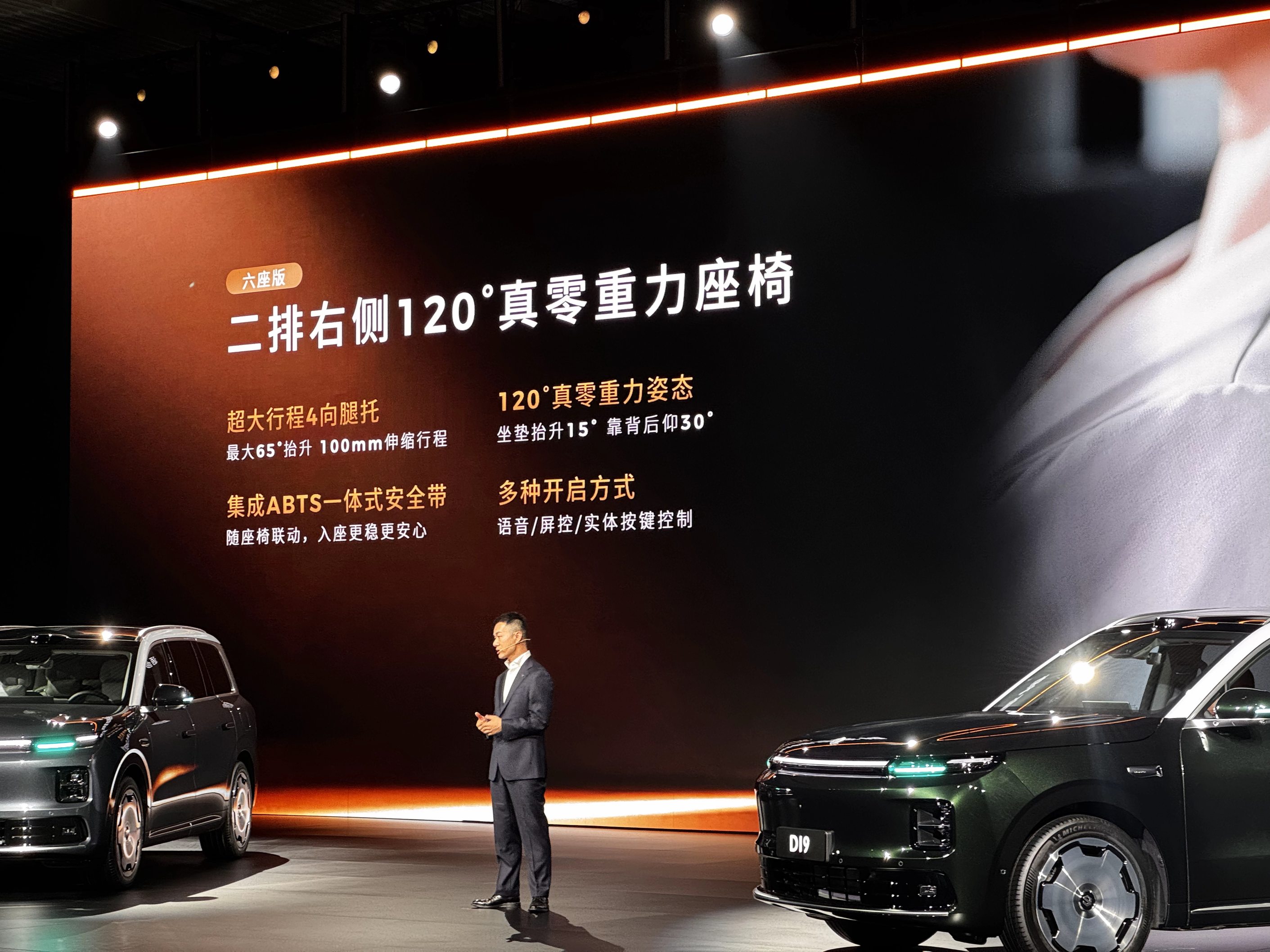 最终上市时,D19打破社交平台上“主销车型25万”的传闻,增程400尊享版使用63.7kWh宁德时代磷酸铁锂电池,标配高通8797芯片、激光雷达、二排右侧零重力座椅、9气囊、23扬声器音响、一二排座椅通风/按摩、21英寸轮辋和带主动预瞄可变阻尼减震器的情况下,直接把门槛拉低到21.98万。而增加双腔闭式空悬、后排吸顶屏、冷暖冰箱、四门电吸门、半苯胺真皮等舒适配置后,装备80.3kWh大电池的D19 500智享版,六座、七座都只要23.98万。