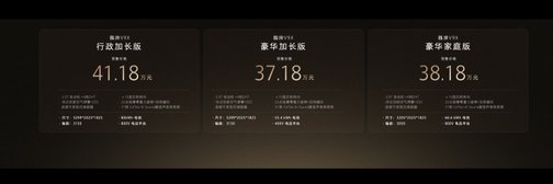 当技术与产品完成深度融合,剩下的便是交给用户来检验。魏牌V9X,即日起正式开启全球预售。依托归元S平台的原生优势,魏牌V9X提供行政加长版、豪华加长版以及豪华家庭版三款选择,家庭版(车长5205mm,轴距3050mm)更适合家庭用户,加长版(车长5299mm,轴距3150mm)宜商宜家。豪华家庭版预售价38.18万元、豪华加长版预售价37.18万元、行政加长版预售价41.18万元。