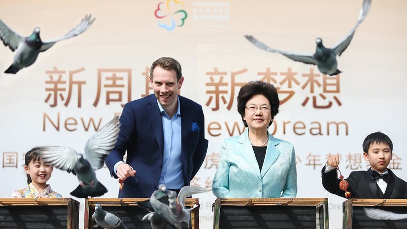在中英文化交流领域,携手托特纳姆热刺,12 年惠及16 万师生,建足球场、送装备、培训教练,选拔200 多位优秀乡村小球员赴英国训练交流,让大山里的孩子接触国际足球、开阔眼界。