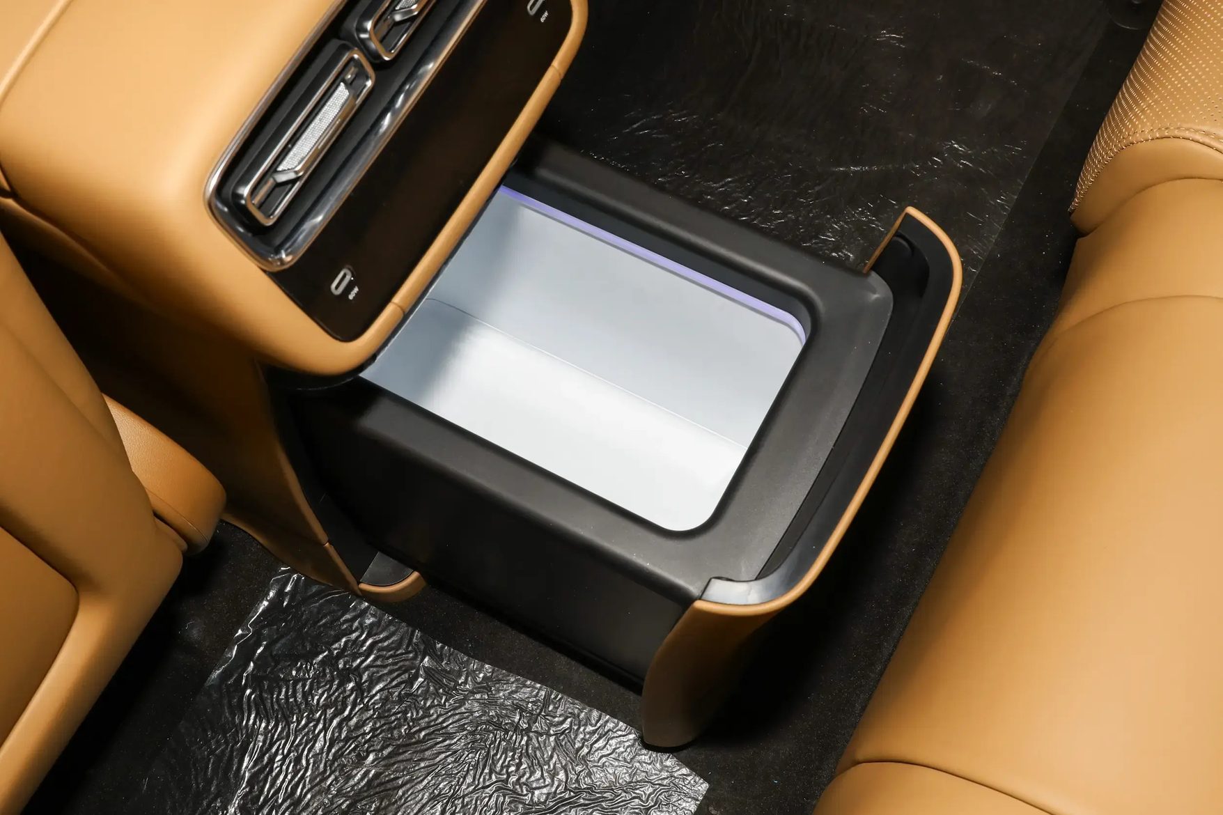 进到车里,最吸睛的肯定是那个30英寸的6K悬浮大屏,中控和副驾连在一起,再加上高通骁龙8295P芯片的加持,流畅度应该不用担心。而且手机互联方面,苹果CarPlay、华为HiCar、Carlink全给齐了。当然,能制冷到零下18摄氏度的9.2升车载冰箱,这在夏天简直是太爽了。