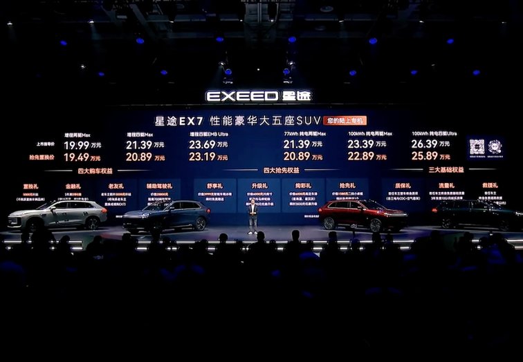 4月19日,星途EX7上市,售价:19.99万元-26.39万元,置换价:19.49万元-25.89万元。