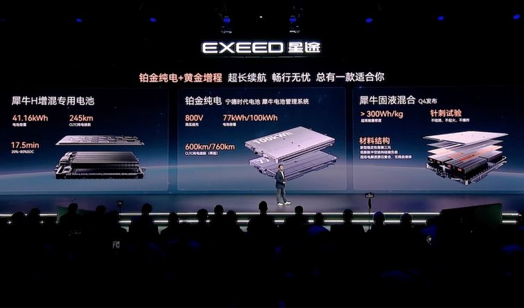 续航方面,增程版搭载犀牛H增混专用电池,41.1kWh容量,CLTC纯电续航245km,综合续航突破1500km;纯电版搭载宁德时代电芯,CLTC纯电续航600km、760km,支持800V高压快充;第四季度将发布犀牛固液混合电池。