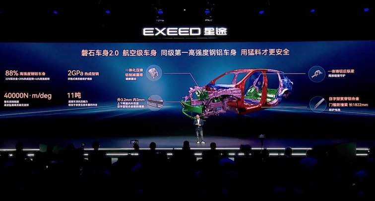 安全,是星途最大的豪华,星途EX7以磐石车身2.0打造航空级车身——高强度钢铝占比88%同级最高,关键部位2GPa热成型钢,整车扭转刚度40000Nm/deg,车顶抗压11吨(5倍车重),同时全系标配7气囊。