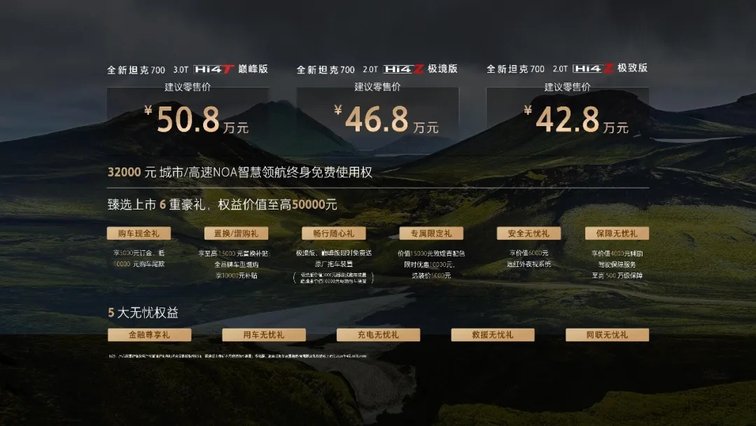 麒麟云中现,境启新人生!全新坦克700正式上市,售价42.8万起