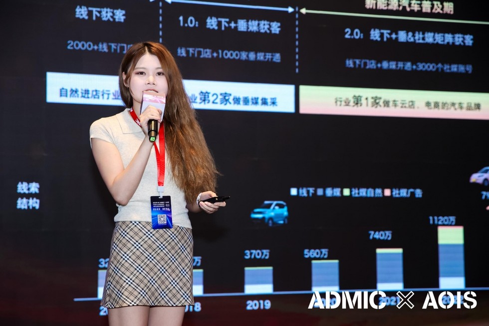 下午的第一位发言人是上汽通用五菱社媒运营总监李景湘女士,她在主题演讲《获客转化体系升级:从流量经营到长效增长》中分享了五菱在社媒运营上的诸多实战经验。她指出,面对2025年社媒流量竞争的白热化,五菱通过重构“获客转化3.0体系”,成功实现了从单纯流量追逐到销量长效增长的跨越。她介绍道,五菱在2025年全网发布内容194万条,声量达132亿,首次实现社媒线索反超垂媒,社媒成交突破35万台。这一成绩的背后,是五菱对“官方+经销商”双轮驱动的深度运营。针对2026年的布局,她强调将实施“聚焦头部、精准投放”的策略。五菱将资源重点倾斜于头部经销商体系,并利用AI技术对海量线索进行清洗与分级,确保高意向客户得到优先跟进。同时,五菱已自建抖音服务商牌照,打通了从内容种草、直播获客到线下成交的全链路闭环,致力于在流量成本攀升的背景下,通过精细化运营实现获客成本的优化与成交率的提升。