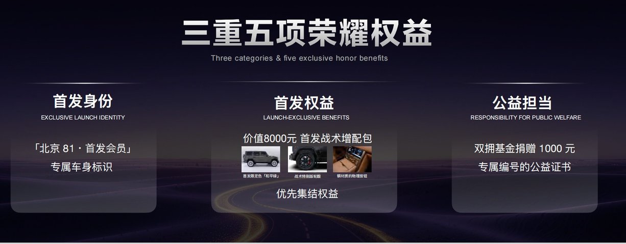 经典之上,再造经典;荣耀之上,再创荣耀。今天,BJ40增程长续航版以“可城可野”之姿,彻底打破都市与荒野的边界;北京81以“战术方盒子”之名,致敬最可爱的人。从全场景的出行底气,到真战友的精神图腾,北京越野,邀您共赴诗与远方,共阅山川湖海,共享家国荣光。