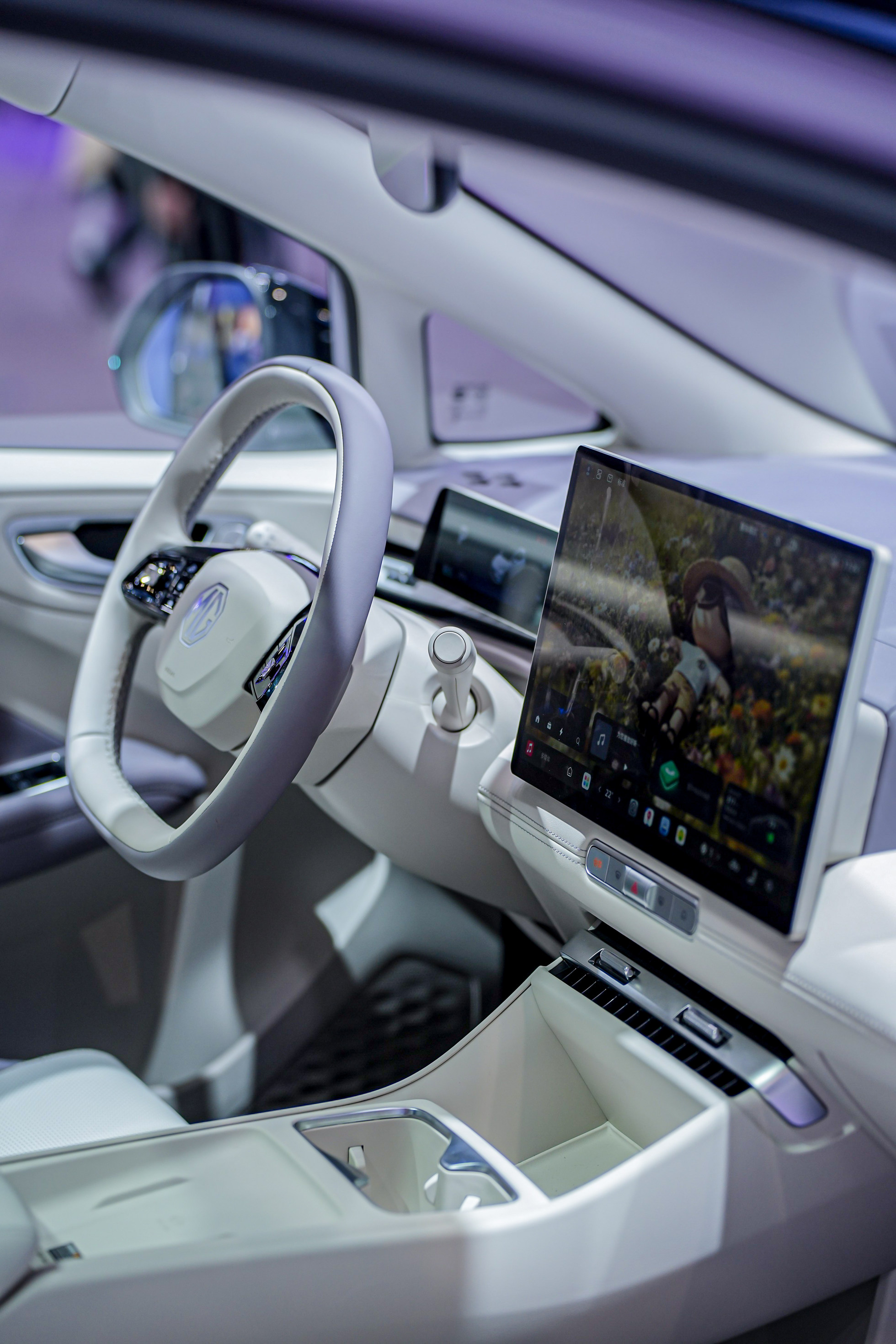 在时尚感方面,2026款MG4新增了冰晶蓝和杏仁米两款车色。冰晶蓝采用保时捷同款金属质感,杏仁米则偏淡雅耐看。原厂直接配备黑色悬浮车顶和17英寸星芒铝合金轮毂,无需额外改装即可获得不错的视觉效果。内饰新增星夜紫配色,搭配双色方向盘,整体设计更趋年轻化。