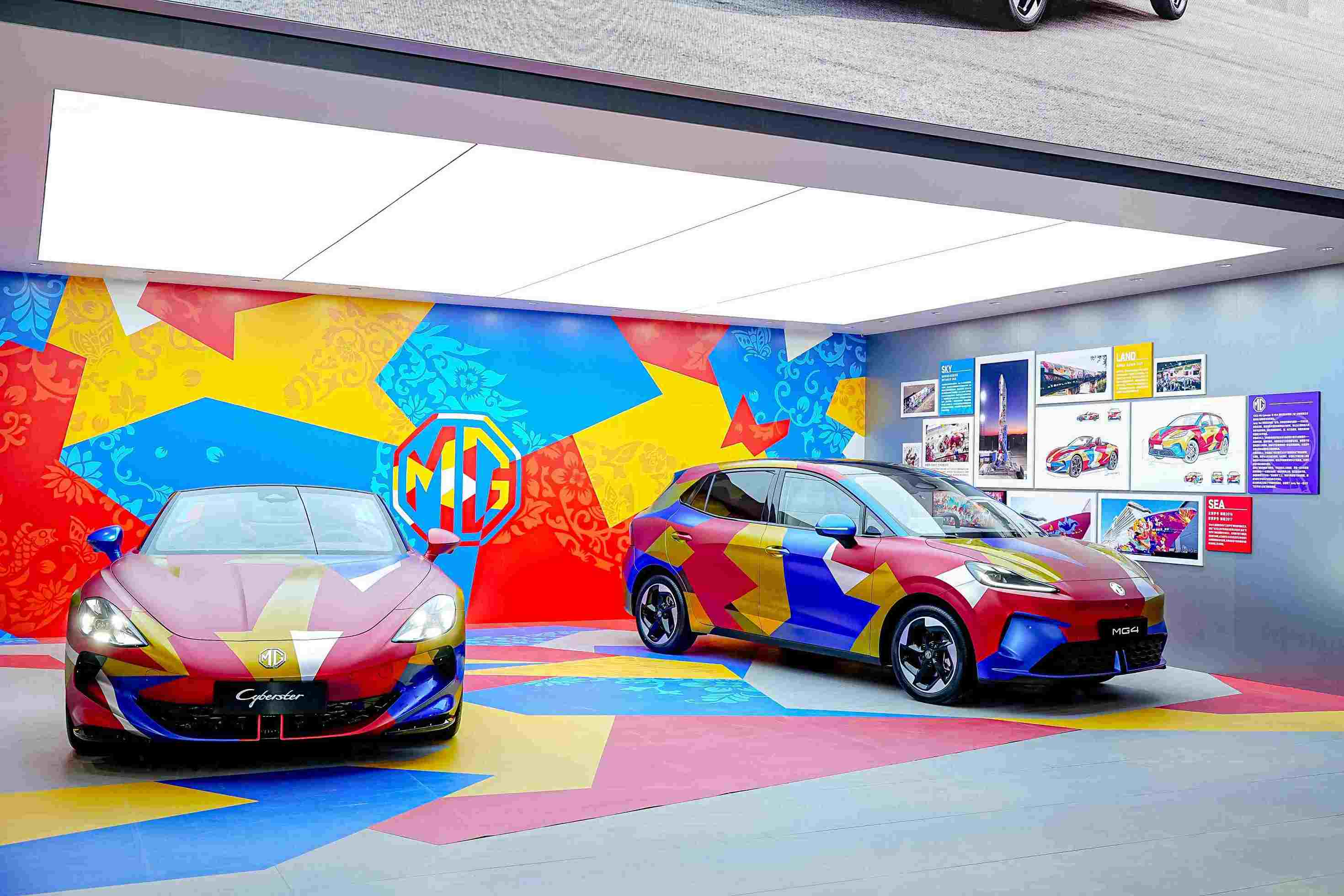 外观方面,2026款MG4新增两个车色:冰晶蓝和杏仁米。冰晶蓝是保时捷同款配色,自带高端质感;杏仁米格调淡雅,打造个人专属潮流标识。全新黑色悬浮车顶省去额外改装费用,整车视觉更干脆利落。17英寸星芒铝合金轮毂更具力量和运动感。MG还携手先锋波普艺术家Jacky Tsai打造联名车衣,联合鲁迅美术学院推出官方潮改,让MG4成为两厢纯电里最出圈的时尚单品。