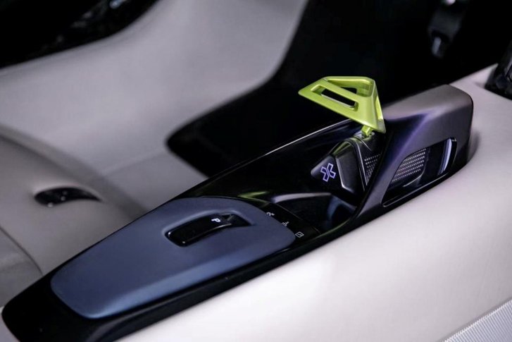 在这款概念跑车上,领克标志性的“+”性能符号迎来了极致演进。位于中央扶手处星火黄色的“+按钮”,一键按下,即可完成从日常到赛道模式的瞬间切换。星火黄色前铲自动伸出100mm,主动式后扰流板(尾翼)动态展开,离地间隙降低15mm,如同呼吸般主动“吸”住地面;中控三个小屏会折叠收回,剥离冗余信息,只保留核心驾驶数据,让驾驶者更专注于驾驶;座椅自适应调整至最佳包裹姿态,转向与动力阈值被重新定义,驾驶舱瞬间从日常空间变身为一台为速度而生的精密仪器。