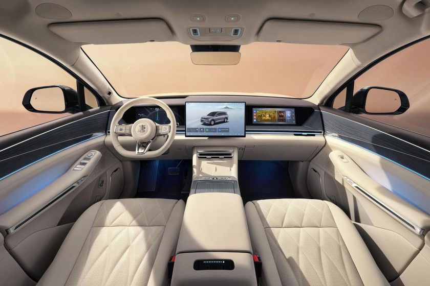 舒适配置上,前排双零重力座椅与二排双零压航空座椅均标配通风、加热及10点式按摩。二排靠背最大可舒展至146°,配合70°电动腿托,打造极致零压坐姿。天空之镜中空夹层天幕面积达2.53平方米,不仅100%隔绝紫外线,更为头部多挤出30mm空间,车内噪音降低3.9分贝。全车还搭载法国帝瓦雷7.1.4声道27扬声器音响系统,让旅途如置身音乐厅。