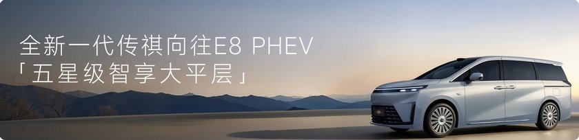在星源插混技术的加持下,全新传祺向往E8 PHEV做到了全球MPV百公里亏电油耗新纪录3.98L、 插混MPV同级最长纯电续航281km、全球中型MPV最长综合续航1537km,以三冠加冕,立于能效之巅。