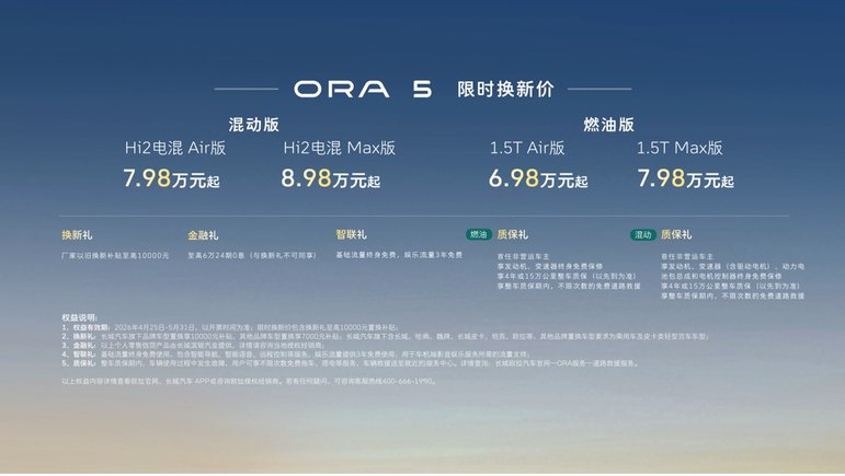长城欧拉5多动力版本重磅上市 建议零售价7.98万元起