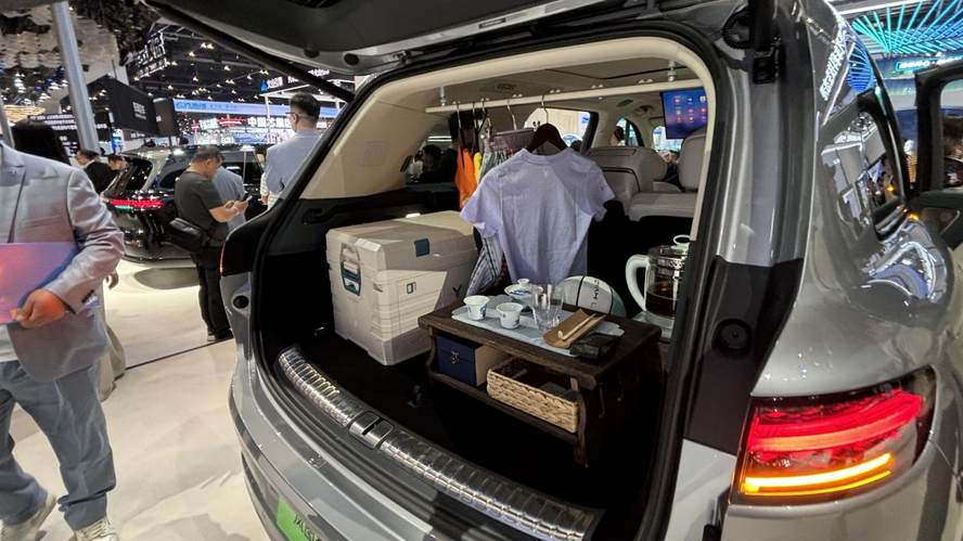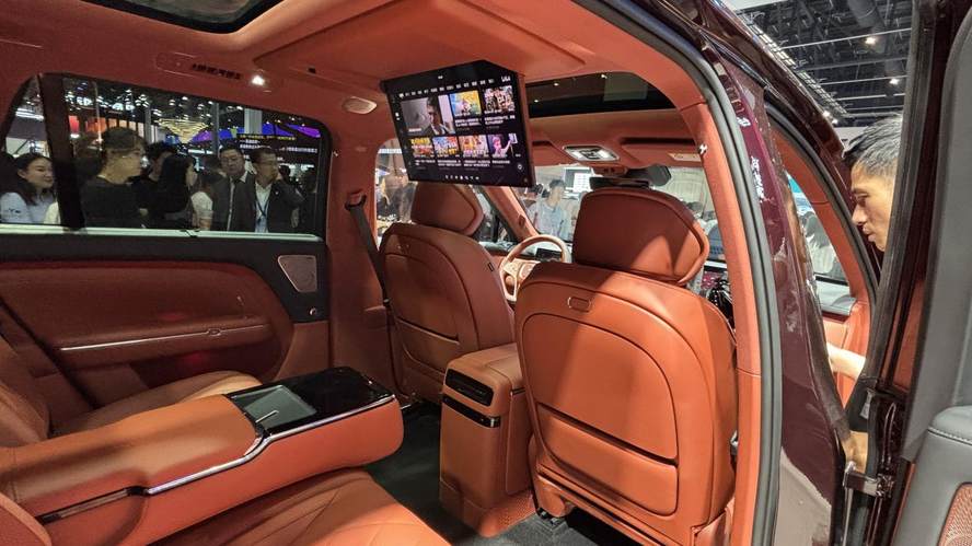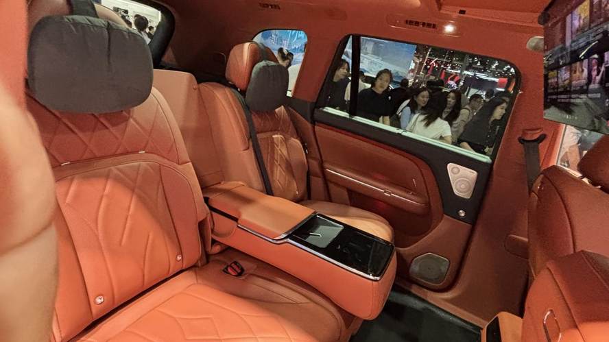 现场工作人员给我们演示了后备厢,基础容积就有1148升,之前发布会装了888杯奶茶的名场面,今天在车展虽然没有重现,工作人员往里面装茶具和不少物品。更绝的是二排放倒后能拓展到2361升,形成一个纯平的大空间,别说搬家,放个充气床垫直接就是个小卧室。