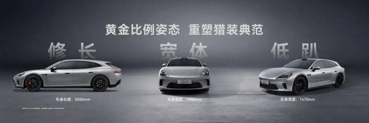 启境GT7的设计,是与华为米兰美学研究所联合开发的产物。它既非传统猎装,也非常规轿跑,以5050/1980/1470mm的车身尺寸、3000mm的超长轴距,搭配≥51.2%轮高比、超59%轴长比及21.5°黄金猎装角,既实现了百万级跑车的低趴黄金比例姿态,又兼顾了宽敞的座舱空间与装载能力。