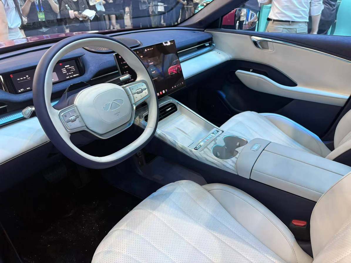 坐进车内,“扬帆映云”内饰同样带来了满满的惊喜,门板及座椅采用蜀锦质感的软包覆,搭配三维立体网孔3DMesh技术,营造出轻奢而温馨的座舱氛围。全车软包覆面积高达8.68㎡,门板采用仿麂皮与珠光皮革双拼材质,冬季不冰手、夏季不粘肤,触感细腻舒适,再加上可随心切换的256色全域氛围灯,配合精致的内饰细节,让每一次出行都充满仪式感。