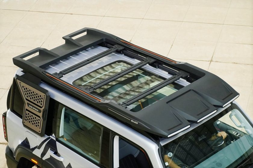 5.车顶平台扰流板二合一在车顶铺设滑动锚点轨道,横杆位置可全域调整,装载自行车、车顶箱或帐篷更加从容;前端集成式扰流板则有效梳理气流,大幅降低高速巡航时的风噪,为车内家人营造静谧旅途氛围。