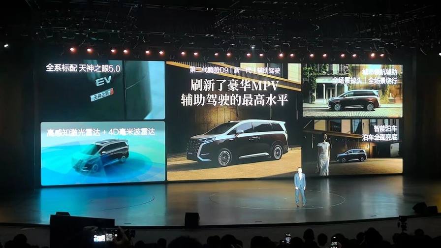 再看辅助驾驶方面,该车全系标配天神之眼5.0系统,并搭载高感知激光雷达+4D毫米波雷达,丰富且领先的科技配置,为第二代腾势D9用户的日常出行带来全方位安全保障。