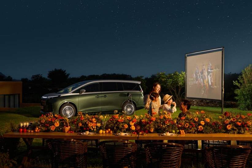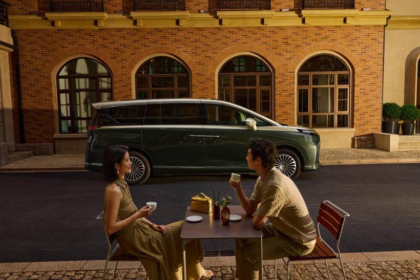 前脸点阵化扩散式前格栅未采用同质化封闭设计,既保留了动感视觉张力,又能为增程器提供高效散热,实现美观与实用的平衡;贯穿式星瀑灯带白天呈现雅致哑光质感,夜晚点亮后光线均匀柔和,如星河铺陈,辨识度突出。侧面内嵌式电动侧滑门轨道搭配流畅上扬的腰线,不仅让车身侧面更显干净利落,更助力车辆实现0.29Cd的超低风阻系数。得益于此,车辆高速120km/h行驶时,车内噪音可控制在52分贝,处于同级较低水平,轻声交谈无需刻意提高音量,保障了车内静谧性。